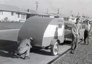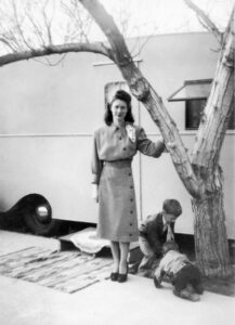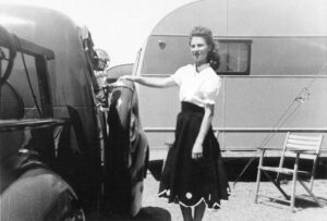 Our camping trailer- dad, mom & me 1957