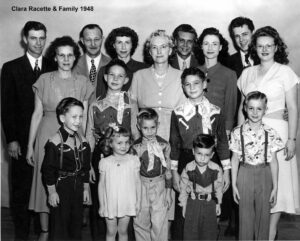 Clara Racette and family. I’m front left, Mom & Dad 3rd & 4th from right