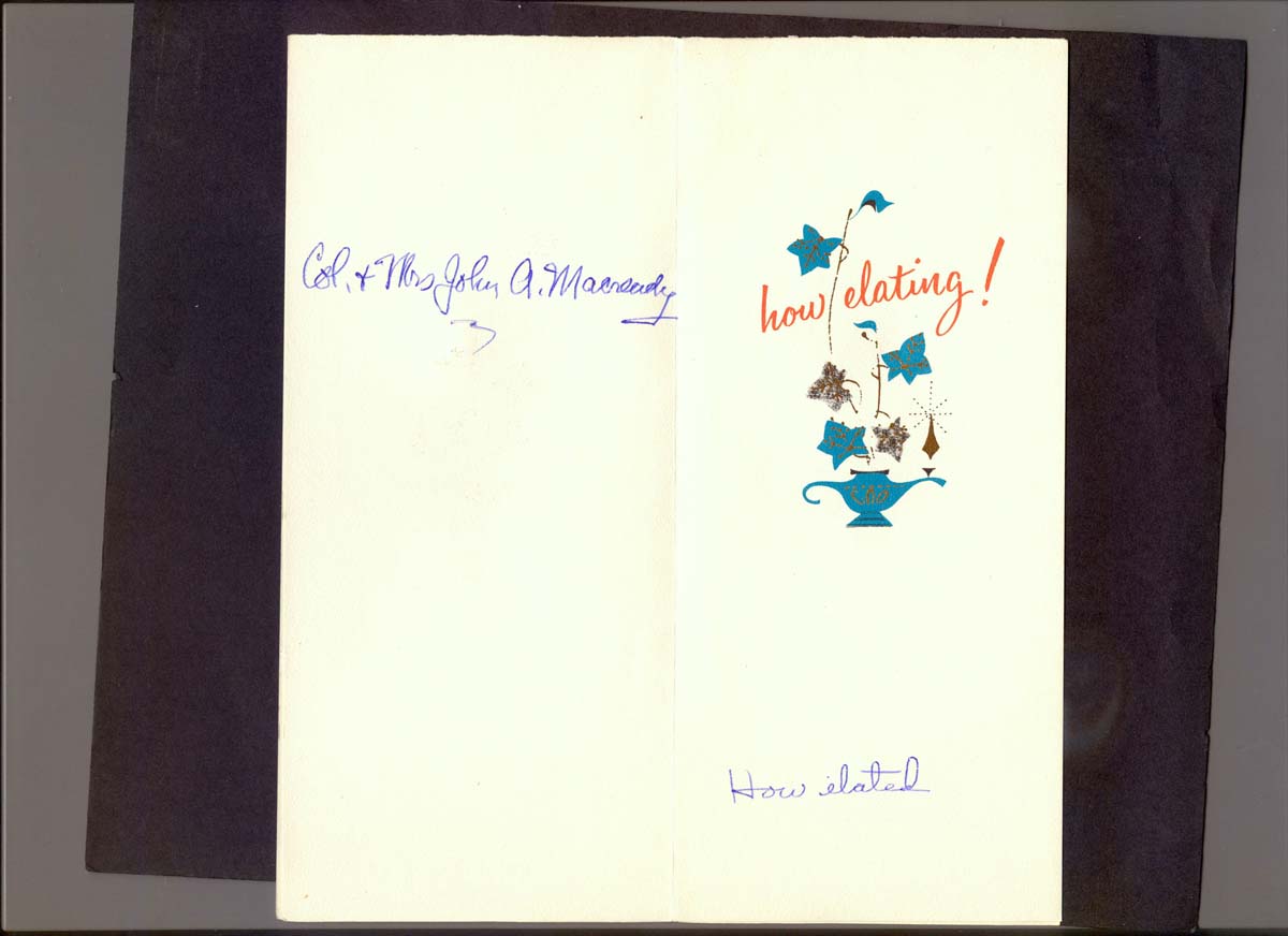 Col John A Macready signed my congratulatory card upon graduation.