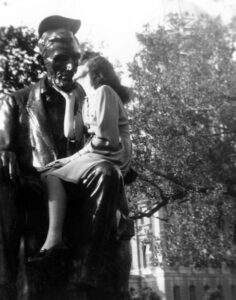 Mom kissing Abe Lincoln, Topeka KS, 1941