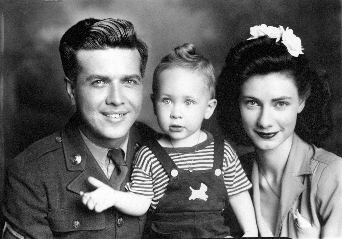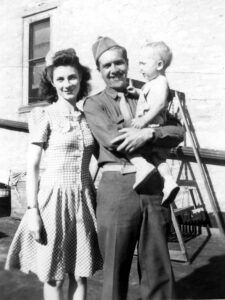(2) Dad on leave from the Army 1944 (with me and mom)